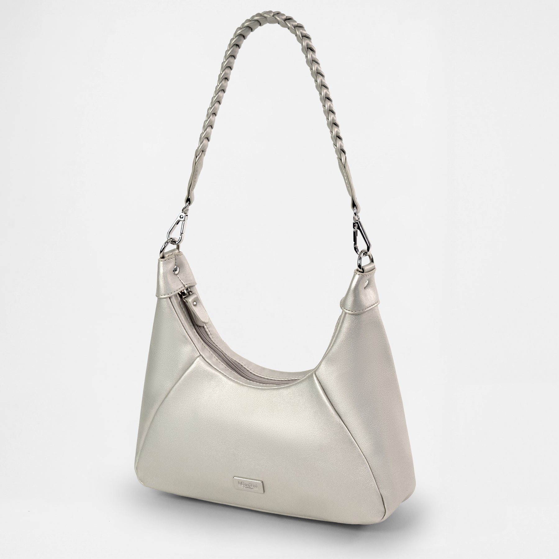 The plaited shoulder strap adds a touch of sophistication, while the longer strap lets you switch seamlessly to a cross-body style.