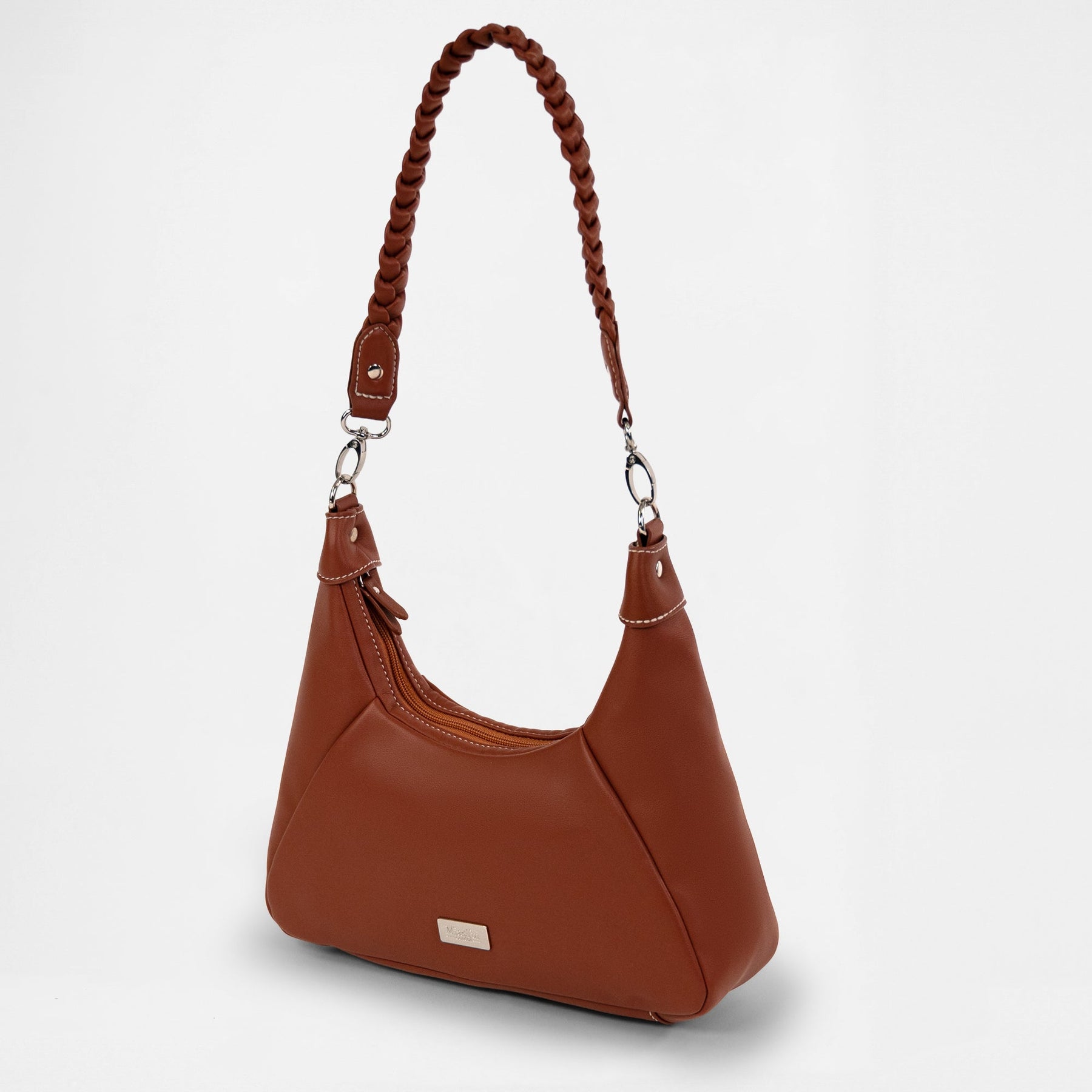 The plaited shoulder strap adds a touch of sophistication, while the longer strap lets you switch seamlessly to a cross-body style.