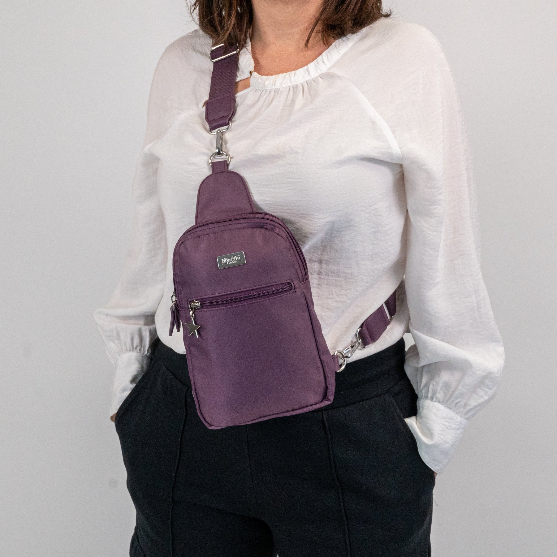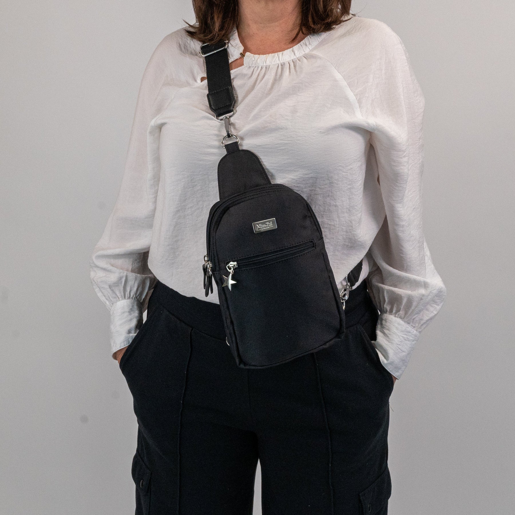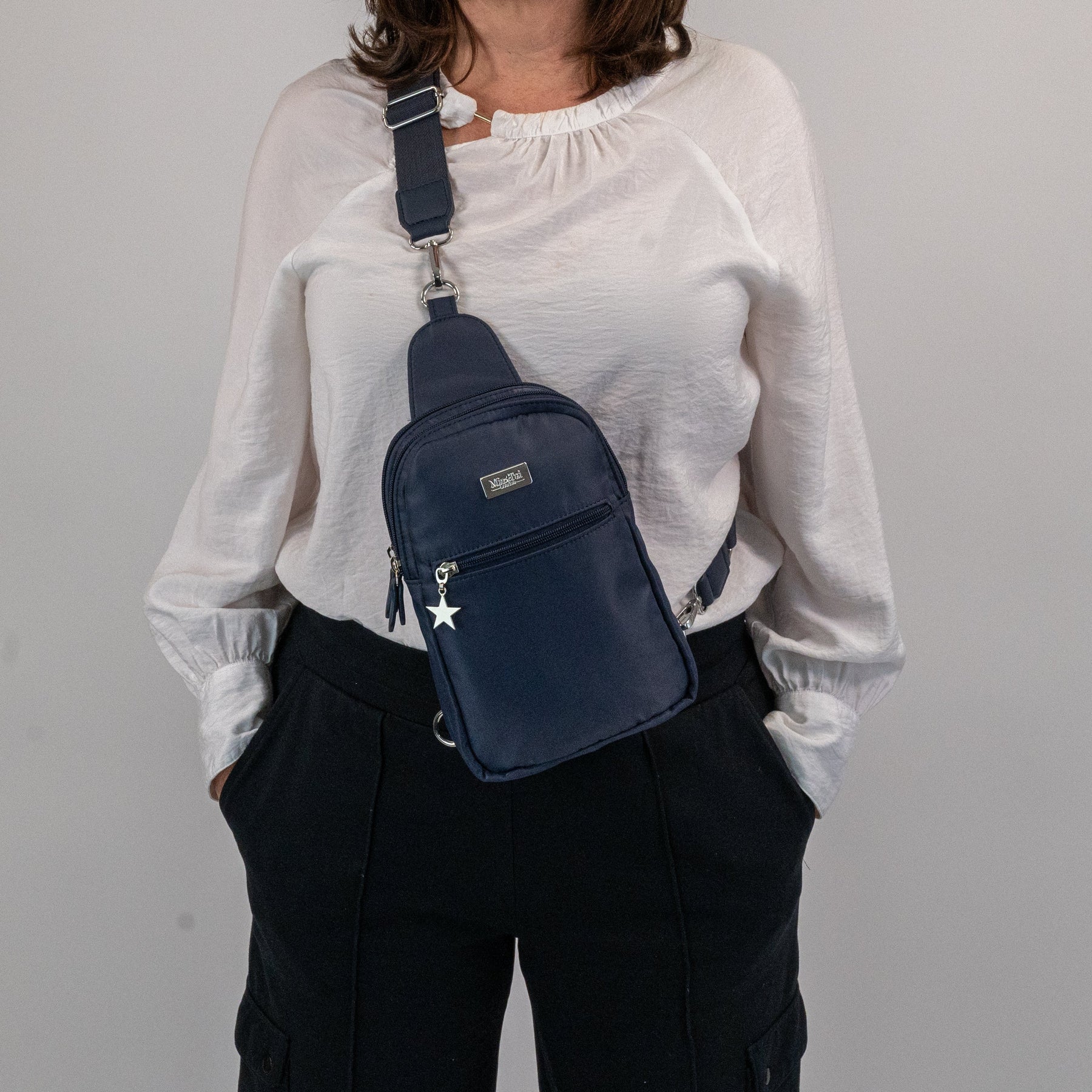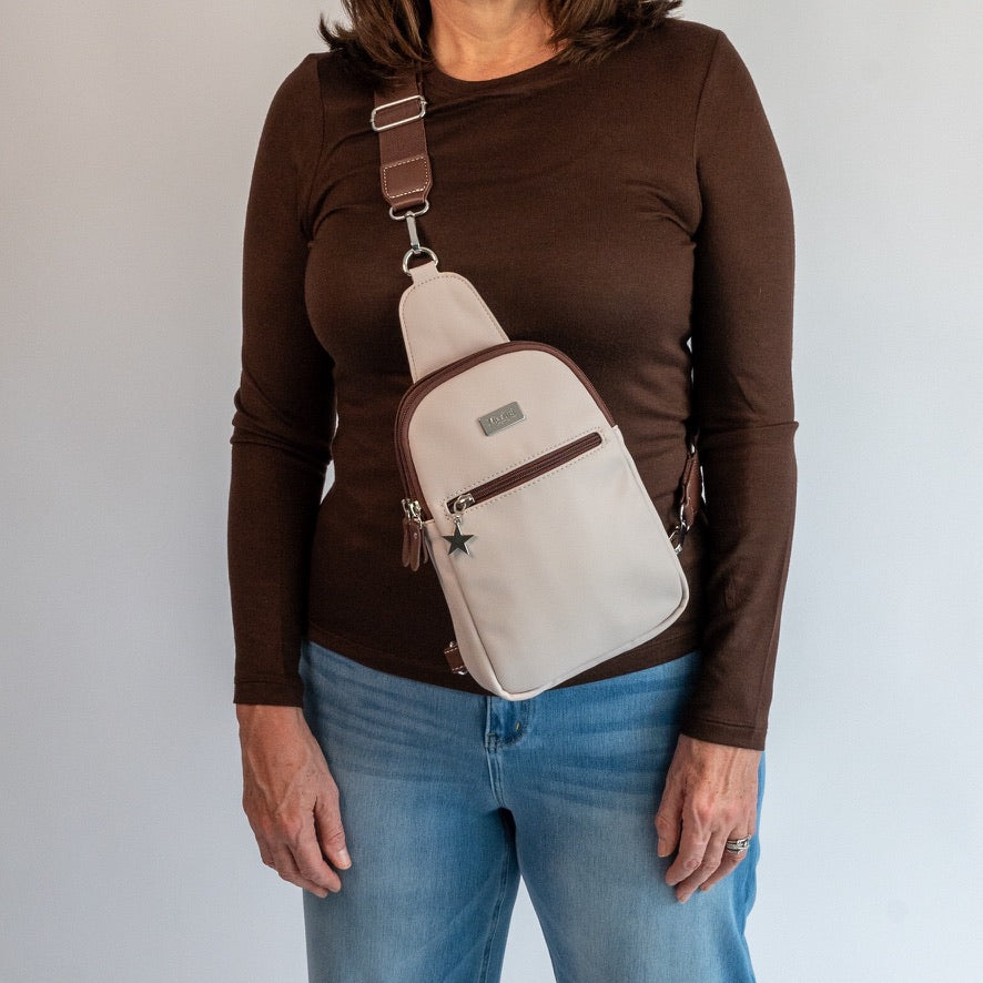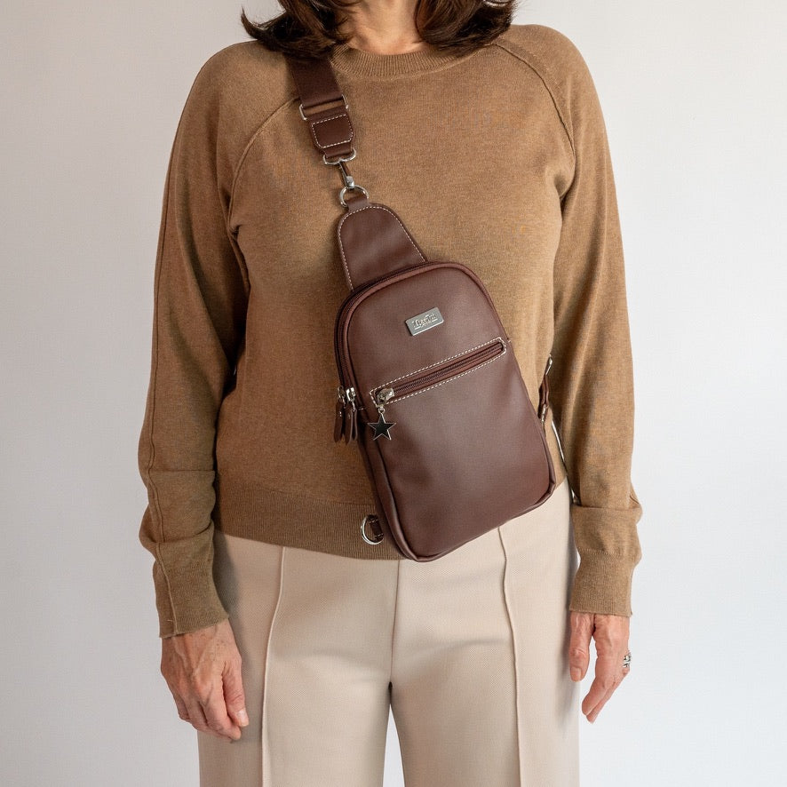 The Large Emma is a sleek, hands-free sling bag designed for ease, comfort and everyday organisation.