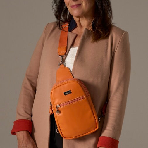 "I love Emma, she is my go-to day bag, big enough for purse, keys, phone, glasses, lipstick, hand cream and a fold-up shopping bag, so you take what you need but not too much, she sits perfectly across the front of the chest, so nice and secure. Excellent bag."