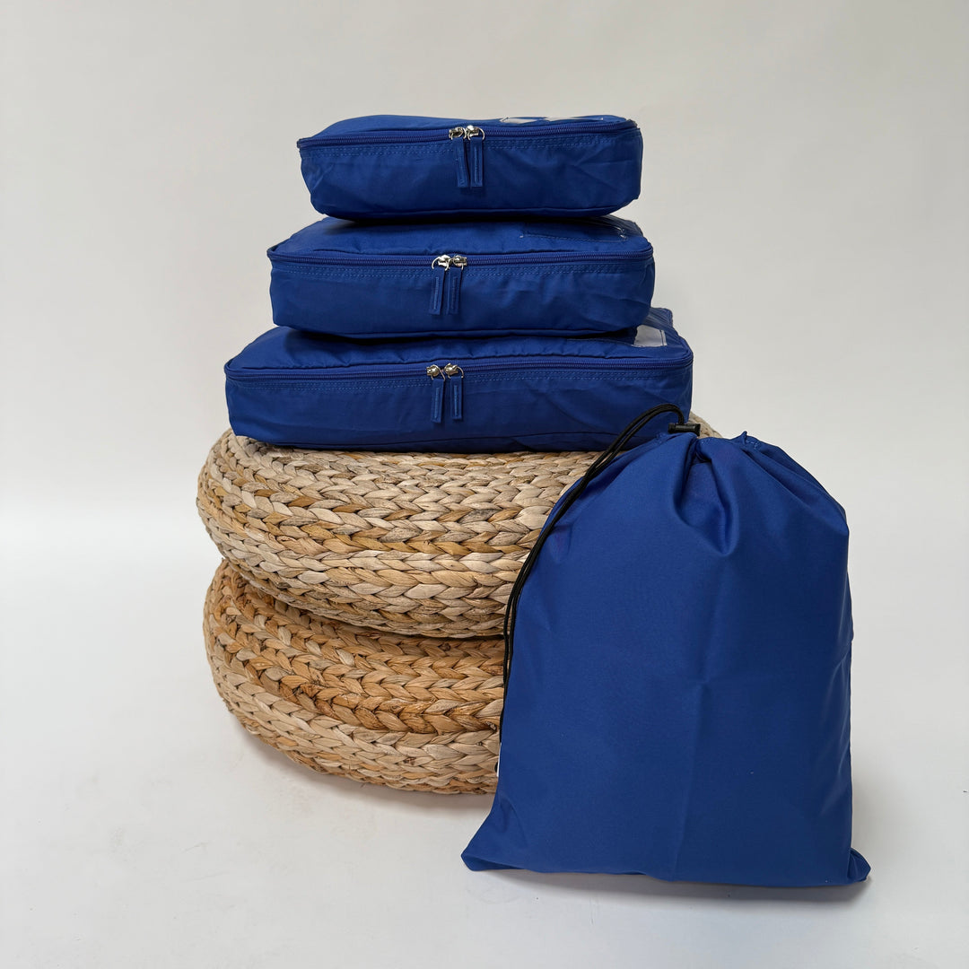Stay organised wherever you go with our Set of 3 Packing Cubes + Laundry Bag — the perfect travel companions to keep your suitcase neat and your essentials easy to find.