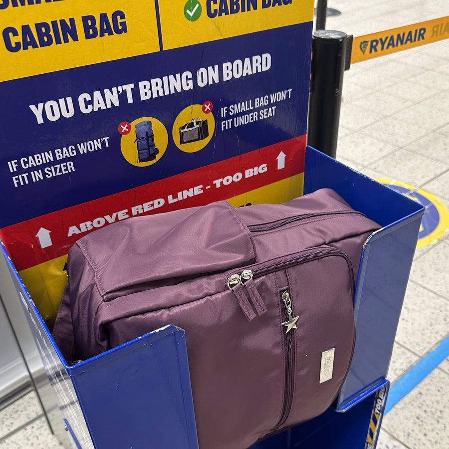 All bags shown are soft-sided and can be gently squished to fit the sizer. Please avoid overpacking rigid items if you’re travelling with a strict airline.