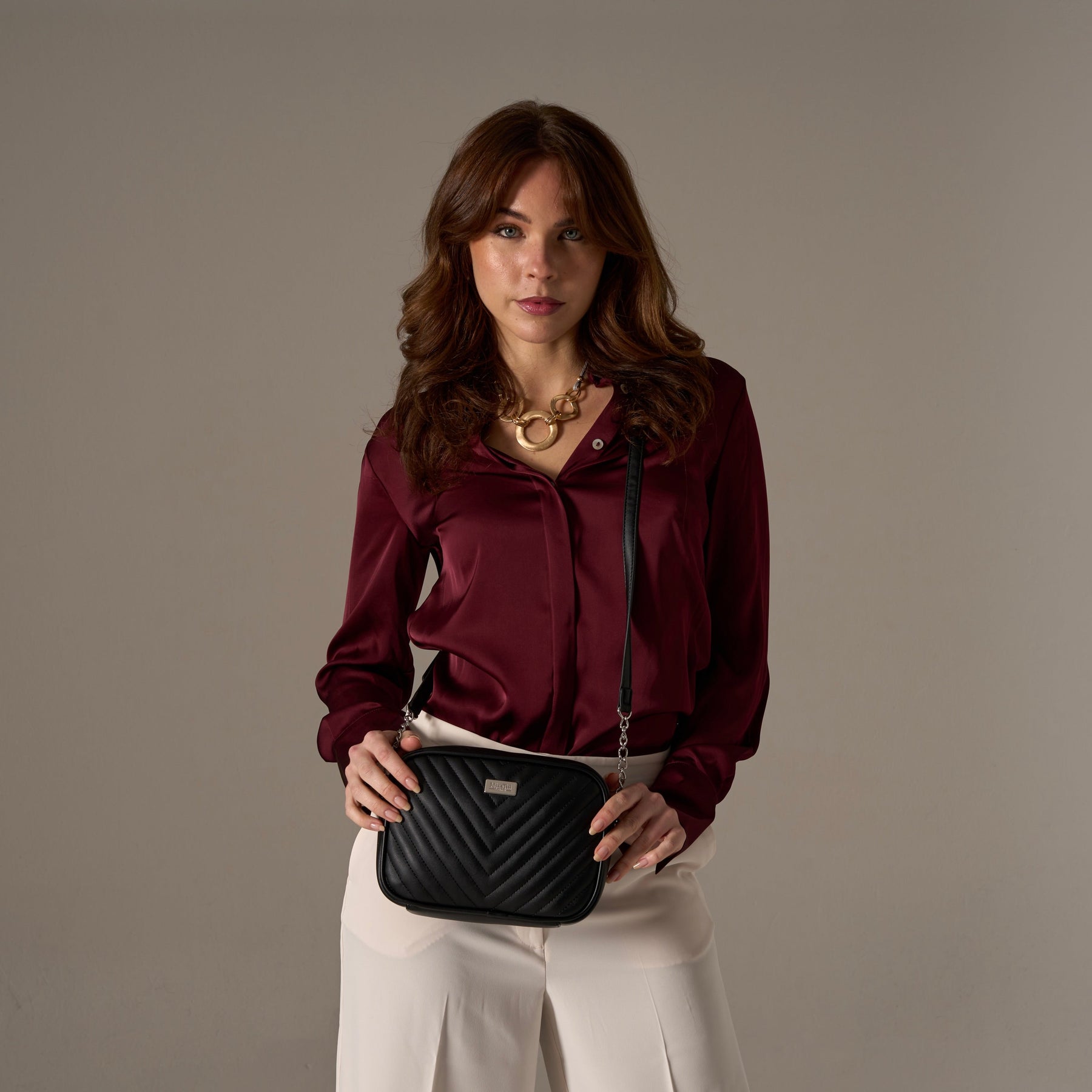 The Chelsea is a beautifully refined crossbody bag that blends timeless elegance with modern practicality. Its luxurious quilted finish and chain-detailed strap create a sophisticated look, while the streamlined silhouette keeps the design clean, polished and effortlessly wearable.